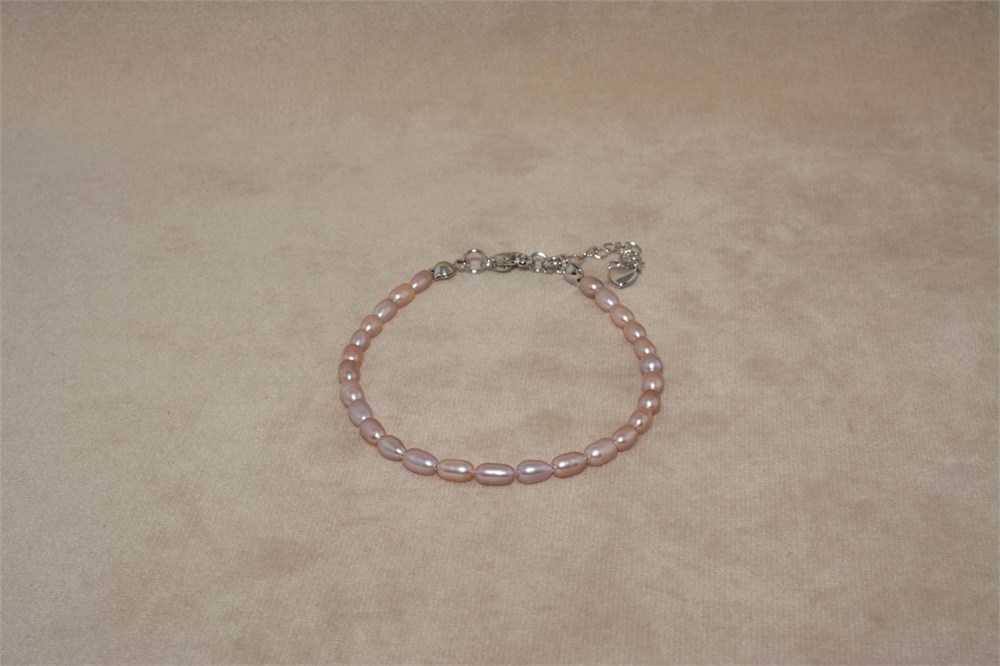 Браслет из холодно-розового натурального барочного жемчуга класса АА. Жемчужины в форме овала "рис" размером 5х3.7 мм. Каждая жемчужина в украшении уникальна.
