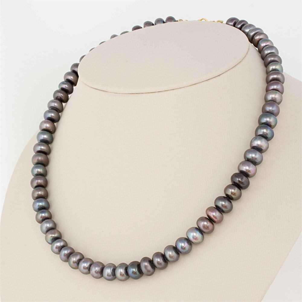 Чокер из натурального бронзово-радужного жемчуга очень хорошего качества. Собран на ювелирном тросике, замок-карабин. Размер 50 см плюс удлинительная цепочка 5 см. Осталось немного жемчужин, можно удлинить. Есть браслет в комплект. Размер бусин 9х7 мм.