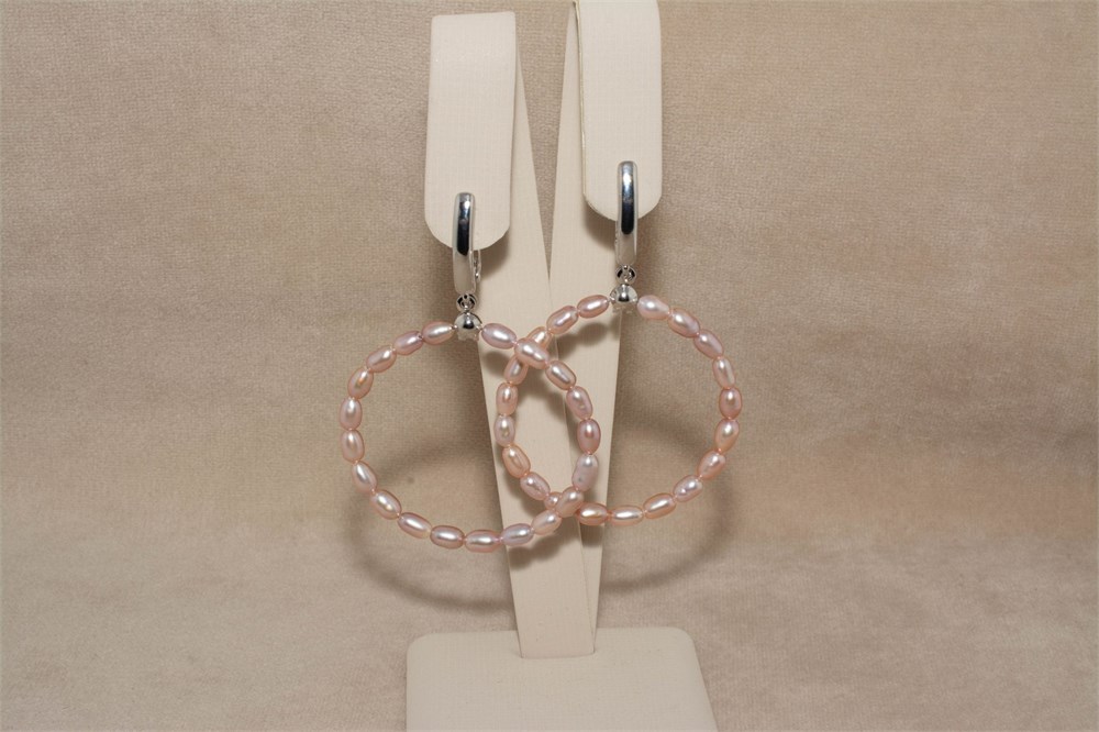 Серьги из холодно-розового натурального барочного жемчуга класса АА. Жемчужины в форме овала "РИС" размером 5х3.7 мм. Каждая жемчужина в украшении уникальна.
