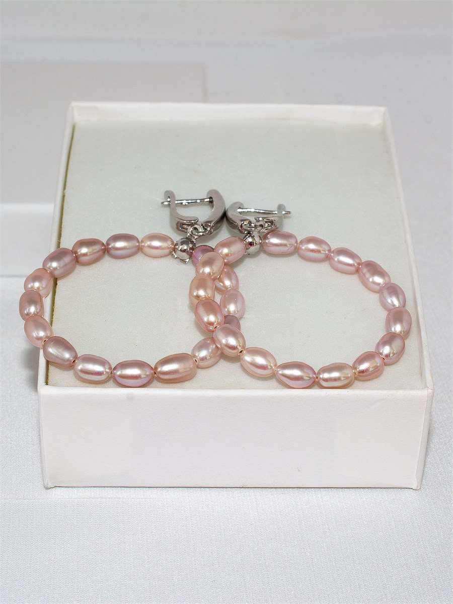 Серьги из серебристо-розового барочного жемчуга "рис", размер жемчужин около 6.5х4.5 мм. Минимум природных дефектов и отличный блеск (ориент).
