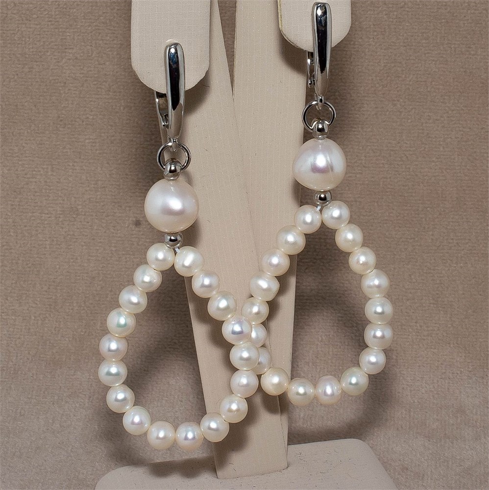 Серьги из натурального барочного жемчуга. Размер мелких жемчужин 4 мм, крупных около 8 мм, общая высота серьги 7 см. Качественная южнокорейская фурнитура с гипоаллергенным покрытием под золото или под серебро.